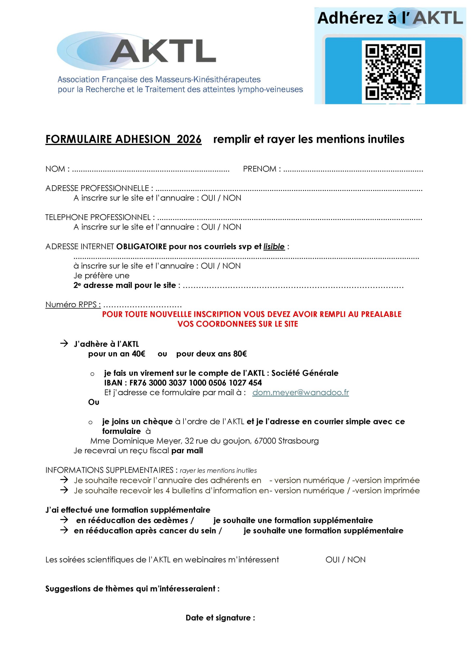 Télécharger le formulaire : (format pdf): FORMULAIRE adhésion AKTL 2026